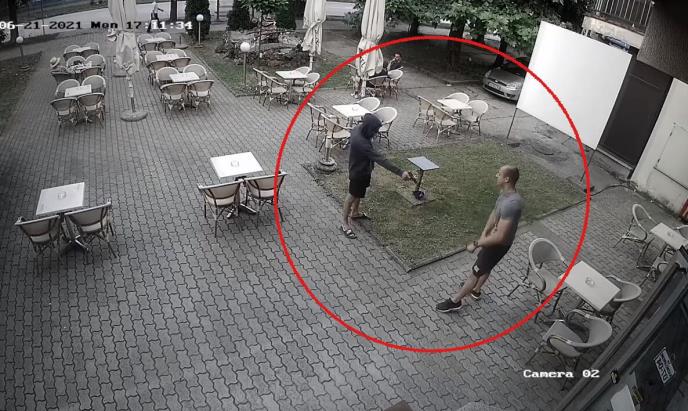 Na snimku se vidi napadač koji i prilazi M.Š, koji je sedeo u bašti kafića i kako se čini, poznaje osobu koja je pucala. Napadač je, potom, izvadio pištolj i nekoliko puta samo pretio, da bi na kraju povukao obarač i zadao mu dve prostrelne rane.