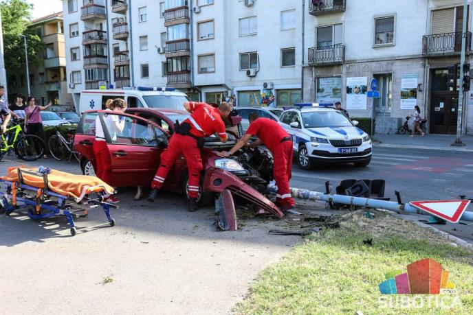SUBOTICA - Danas oko 16,40 časova na raskrsnici kod Nove opštine dogodila se teška saobraćajna nezgoda. Usled udarca automobila u semafor isti je pao na prolaznike, dete-pešak je zadobio teže telesne povrede, dok su putnici u automobili lakše povređeni.