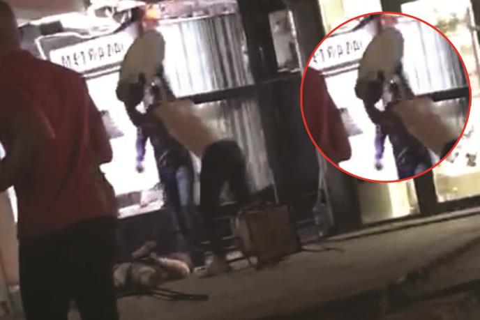 Jedan od njih ga pri tome svom snagom šutira u glavu dok ga drugi udara stolom. Na snimku se vide i prolaznici koji su batinanje sve vreme nemo posmatrali.