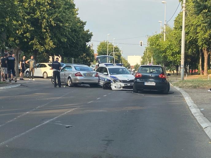 On je dodao da je najveća šteta pričinjena policijskom automobilu, što se može i videti na fotografiji koju nam je poslao, ali i da je "mercedes", navodno ne vodeći računa presekao put patroli.