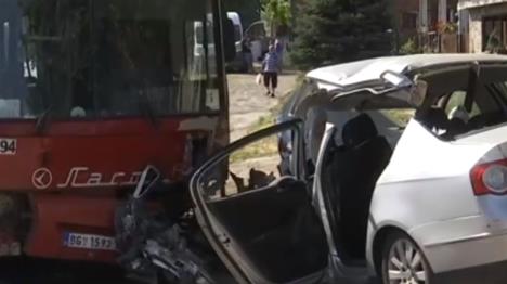 Autobus se sudario sa automobilom marke "pasat" koji je dolazio iz suprotnog smera, a auto je u udesu potpuno smrskan. Nastradali su se nalazili u automobilu.