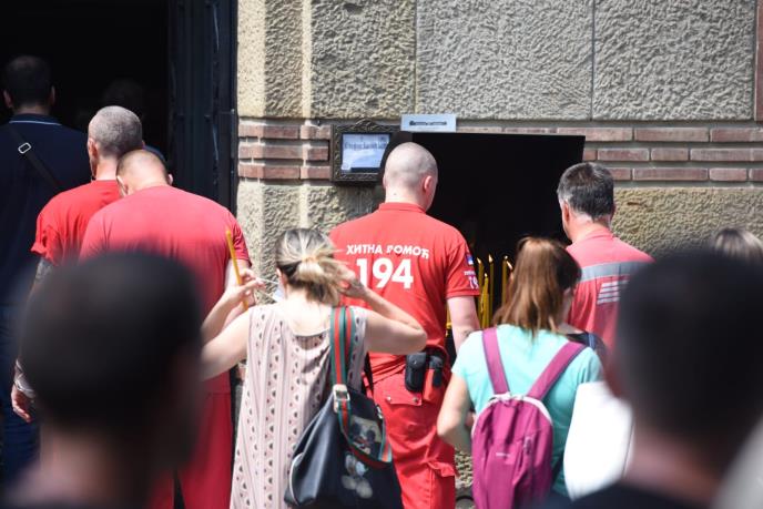Među prisutnima na sahrani je veliki broj zaposlenih u Hitnoj pomoći, gde radi Stefanov otac, a gde je radio i deda.