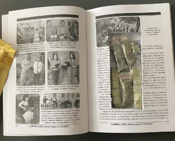 Detaljnim pregledom pošiljke utvrđeno je da je unutrašnjost časopisa izdubljena sa namerom da se napravi skrovito mesto za krijumčarenje. Carinici su iz tog udubljenja izvadili nekoliko kesica punih antikvitetnog novca velike kulturne i umetničke vrednosti.
