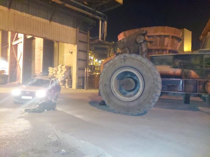 On je bio na svom radnom mestu u krugu kompanije, a buka iz pogona je bila ogromna. Ipak je, srećom, uspeo da čuje kolegu koji mu viče da se skloni jer prema njemu ide grdosija.