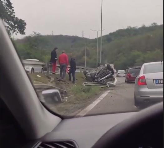 BEOGRAD - Na auto-putu Beograd - Niš, na deonici između "Laste" i Vrčina, jutros se dogodila saobraćajna nesreća, pri čemu se jedno putničko vozilo prevrnulo na krov.