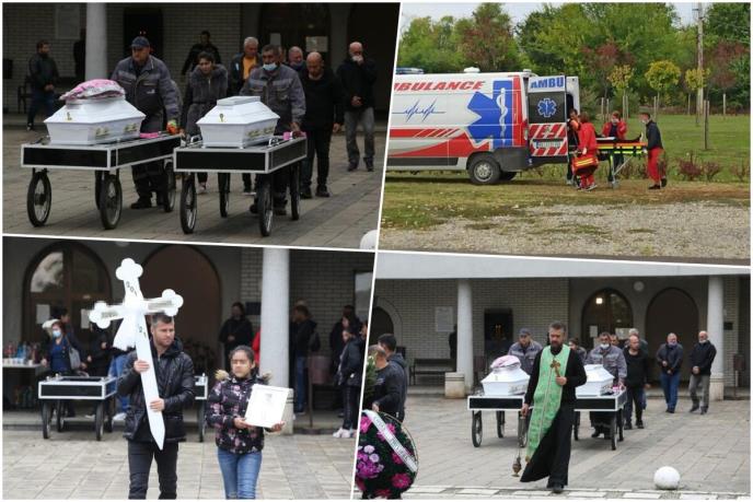 Kuma je nosila dva ćebeta i bele ruže i držala nesrećnu majku koja je išla iza dva bela kovčega. Na sahrani je i najmlađa ćerkica nesrećne žene.