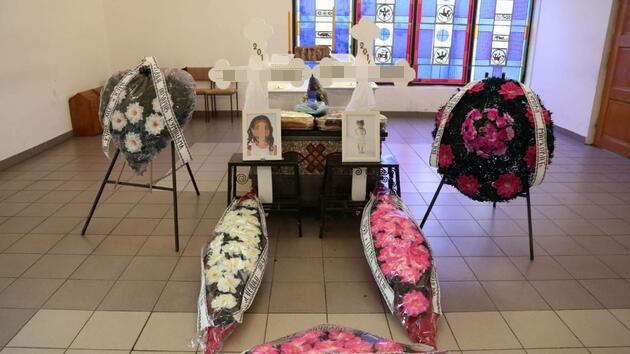 Marija, majka nastradalih devojčica, bila je vidno uznemirena po dolasku na groblje. Zakukala je na ulazu u kapelu, ali se trudila da bude jaka i skoro da suzu nije pustila dok su joj izjavljivali saučešće. Kada je tužna povorka oko 14 sati krenula iz kapele, majka devojčica koračala je polako iza dva kovčega, kao da nije svesna nesreće koja ju je snašla, a za ruku ju je držala kuma, koja je nosila ruže.