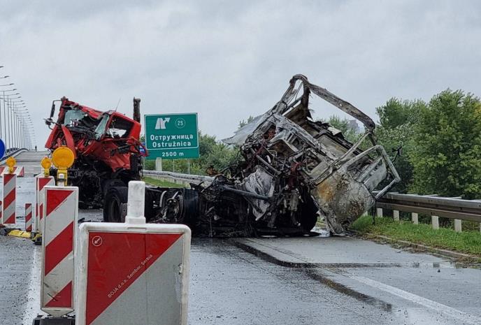 TEŠKA NESREĆA NA OSTRUŽNIČKOM MOSTU: Dva kamiona se sudarila pa se zapalila, sve stoji! (FOTO, VIDEO)