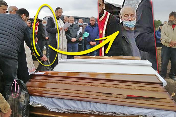 Na fotografijama koje je reporter Kurira zabelezio na sahrani porodice Đokić, osumnjičeni je na licu imao hirušku masku, ali uprkos tome nije delovao tužno.