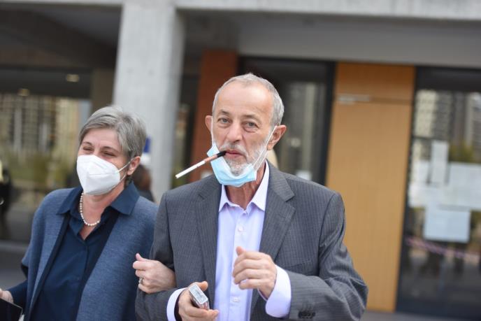 Tokom jučerašnjeg ročišta sud je napravio i kratku pauzu od desetak minuta. Aleksić je to vreme iskoristio da prošeta i zapali cigaretu ispred suda, na platou na kom je stajao i mladić s porukom podrške Mile