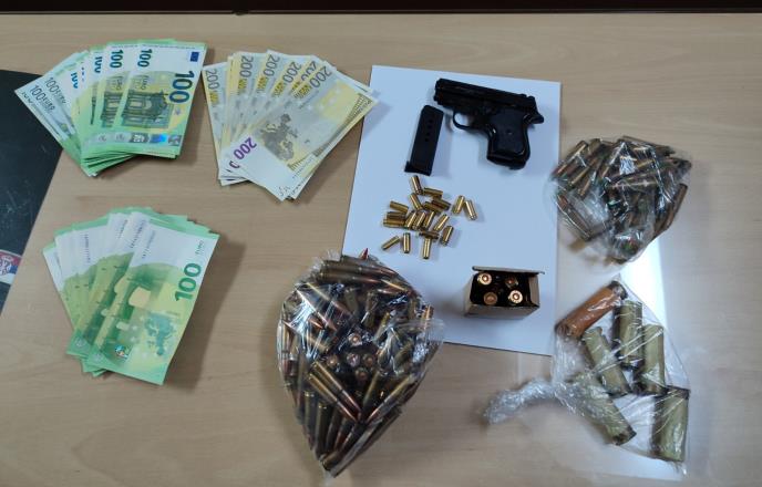 Pretresom stana osumnjičenog, pronađen je pištolj koji je, kako se sumnja, koristio za izvršenje krivičnih dela i novac, za koji se sumnja da je oduzet u menjačnici.