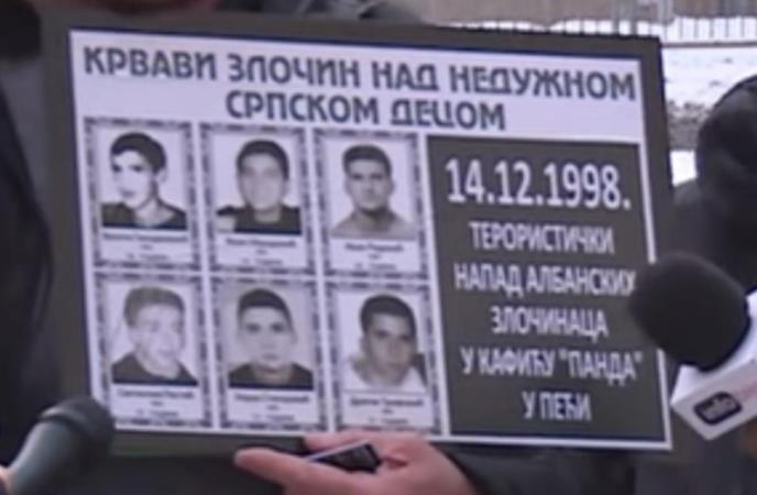 Danas se navršavaju 23 godine od ubistva šest srpskih mladića u kafiću "Panda" u Peći, a počinioci ovog jezivog zločina i dalje su nepoznati. Ubijeni su Ivan Obradović (15), Vukota Gvozdenović (16), Zoran Stanojević (18), Svetislav Ristić (18), Ivan Radević (25) i Dragan Trifović (18), dok je Vlado Lončarević (18) teško ranjen, a Mirsad Šabović (34) i Nikola Rajović (18) lakše.
