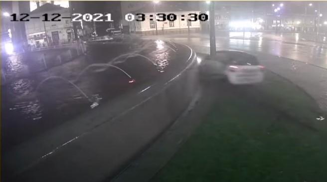 POGLEDAJTE SILOVIT UDAR AUTOMOBILA U FONTANU NA SLAVIJI! Prava je sreća da niko nije poginuo, vozač izbegao i banderu!
