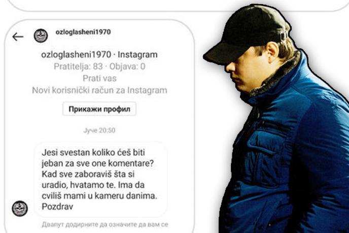 - Jednom sam na Instagramu prokomentarisao objavu vezano za hapšenje Velje Nevolje, napisao sam: "Da li je moguće da ovakvi ljudi postoje?" Nedugo potom, u inboks mi je stigla poruka s profila koji obiluje simbolima navijačke grupe Principi. Pisalo je da će mi se desiti nešto loše zbog komentara. Posebno mi je neprijatno zbog toga što se priča da su oni snimali i slikali svoje žrtve dok su ih mučili i kasapili, a u poruci piše "da ću da cvilim u kameru" - kaže naš sagovornik.