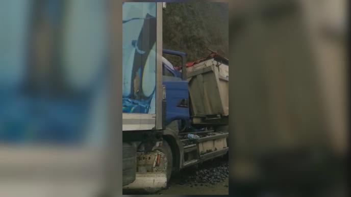 "Na kolovozu su tri kamiona skucana jedan u drugi, jedna cisterna, jedan veliki šleper i kamion. Mislim da je razlog klizav kolovoz, dosta ima uglja po putu, uslovi za kretanje su veoma otežani", kazao je za RINU, Miladin Ostojić.