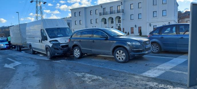 des na obilaznici oko Čačka dogodio se danas oko jedan čas posle podne, kada je za sada i još neutvrđenih okolnosti kombi vozilo novovaroških registarskih oznaka koje se kretalo ka Užicu udarilo u vozilo marke audi koje je stajalo na semaforu, koje je zatim udarilo u pežoa koji se takođe nalazilo ispred.