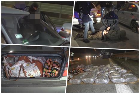 Policija je u blizini naplatne rampe Vrčin zaustavila vozilo BMV kojim je upravljao osumnjičeni i prilikom pregleda u prtljažniku pronašla oko 50 kilograma marihuane, upakovane u pakete.
