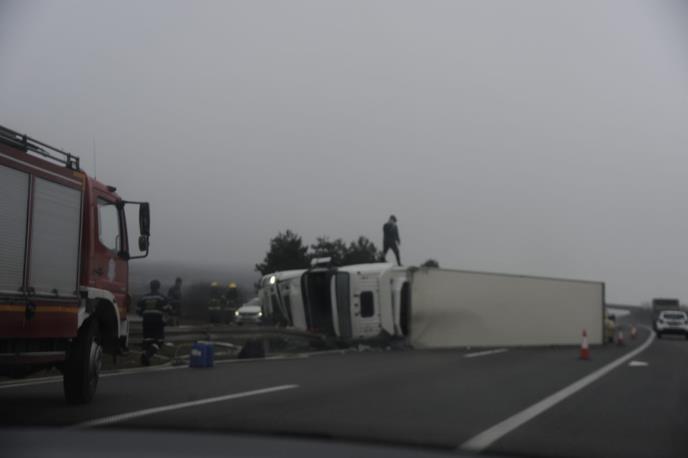 Na licu mesta je jedno vatrogasno vozilo, saobraćaj se na kratkom delu te deonice odvija usporeno, a na tom delu puta je magla.