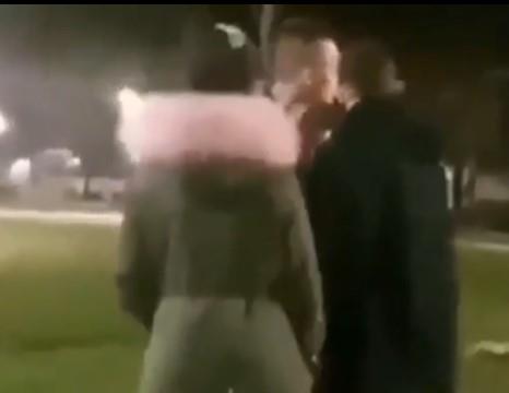 U toku rasprave, jedan od napadača siglanizira osobi koja je sve snimala telefonom da planira da udari momka, koji je zajedno sa svojom devojkom pokušao da izbegne ono što je usledilo.
