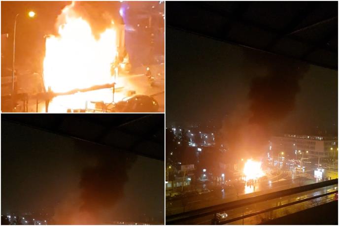 Na jednom od snimaka sa veće udaljenosti se zapravo, možda, i najbolje vide razmere ovog požara. Vatrena stihija je u potpunosti obuhvatila objekat, a iznad objekta kuljao je crni dim.