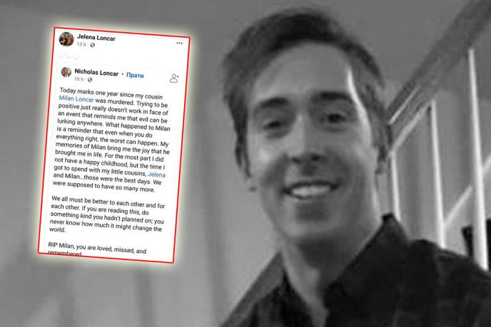 - Danas je godinu dana od ubistva mog rođaka. Pokušavam da budem pozitivan, ali mi ne ide. Događaj koji me podseća da zlo vreba bilo gde. Ono što se desilo Milanu je podsetnik da čak i kad radiš sve kako treba, može da se desi najgore. Moja sećanja na Milana mi donose radost koju mi je on doneo u životu. Najveći deo nisam imao srećno detinjstvo, ali vreme koje sam proveo sa mojim rođacima Jelenom i Milanom to su bili najbolji dani - rekao je rođak u opisu fotografija ubijenog i njegove sestre.