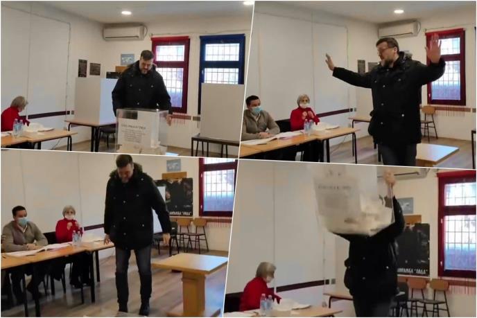 Prema navodima krivične prijave Policijske stanice Savski venac, osumnjičeni je oko 14.35 sati, u Bulevaru kneza Aleksandra Karađorđevića, na biračkom mestu broj 35, u zgradi mesne zajednice Dediinje, tokom održavanja glasanja na referendumu, svoj glasački listić ubacio u biračku kutiju, a potom istu podigao sa stola i bacio je na pod, usled čega se kutija razbila, a galsački listići se rassuli po podu, što je uzrokovalo prekid glasanja na navedenom biračkom mestu.