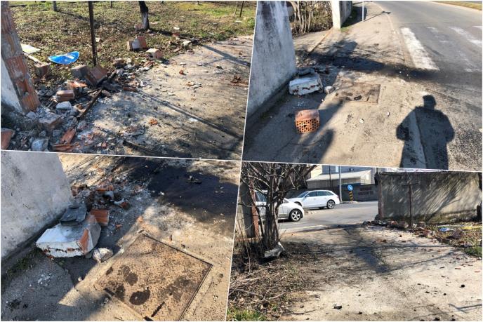 Prilikom udara odvaljen je saobraćajni znak i izvaljena kapija.