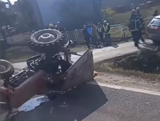 Traktor se prevrnuo nakon sudara sa automobilom.