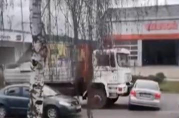 Naime vozač kamiona, prednjim delom vozila gurao je automobil ulicom jedno tridesetak metara.
