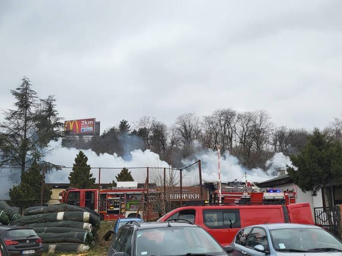 Podsetimo, vatra je buknula oko 8,25 časova i veliki broj vatrogasnih vozila nalazi se ispred restorana.
