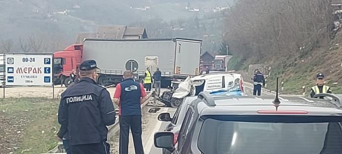 Na magistralnom putu od Čačka ka Užicu u blizini mesta Tučkovo došlo je do teške saobrćajne nesreće kada su se sudarili kamion i putničko vozilo.