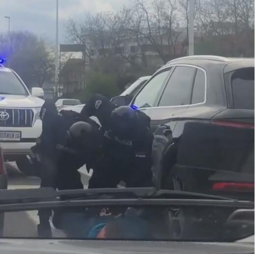 Dve patrole interventne policije zaustavile su automobil marke "audi Q5", nakon čega su munjevitom brzinom izvukli muškarca koji je upravljao vozilom, oborili ga na zemlju i stavili mu lisice.