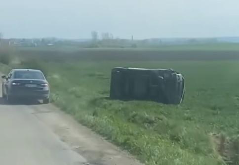 Na putu Titel - Žabalj kombi vozilo marke "opel vivaro" sletelo je sa kolovoza i prevrnulo se.