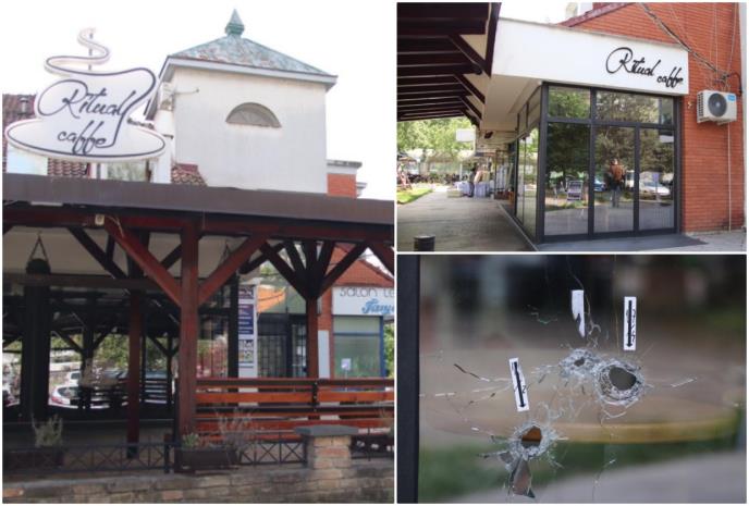 Dan nakon brutalnog ubistva Luke Žižića, vlasnika kafića "Ritual" u Bloku 44 na Novom Beogradu, mogu se videti rupe od hitaca na staklu lokala.