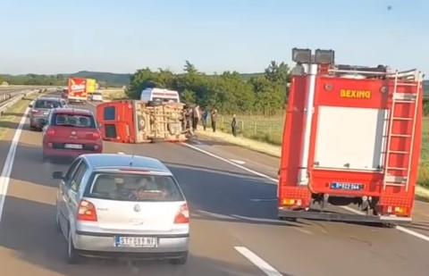 Četiri osobe povređene su u sudaru putničkog kombija i kamiona koji se dogodio oko 19 sati kod Batočine nadomak isključenja sa auto-puta Beograd - Niš.