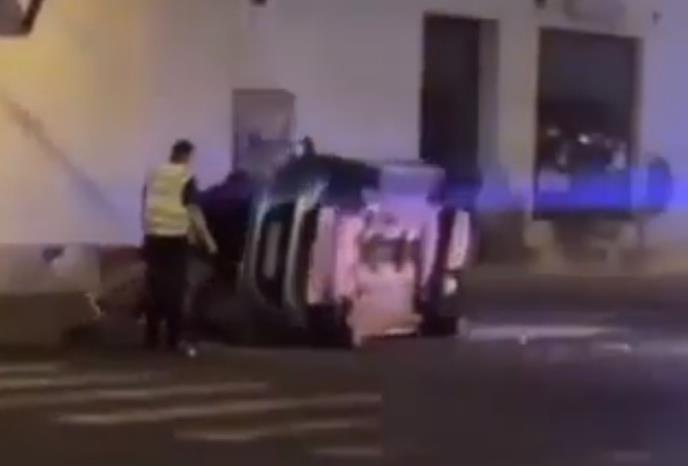 Na video snimku objavljenom na društvenim mrežama se vidi kako je automobil prevrnut na bok, a tri mladića ga kao od šale vraćaju u normalan položaj.