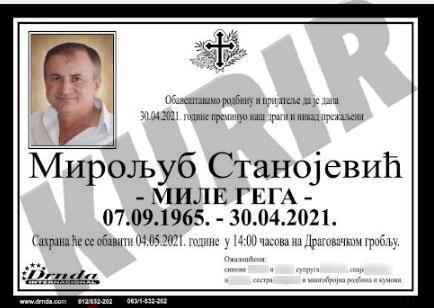 Porodica Mileta Gege posle smrti se zaista ponašala kao i svaka druga ožalošćena familija, pa su čak i objavili čitulju koju su potpisali sa ožalošćeni.