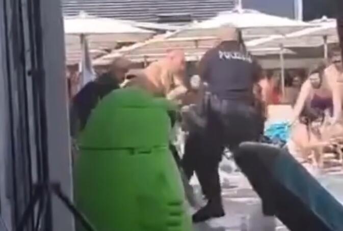 Kako se vidi na snimku, Nikola je u kupaćim gaćama, a njega pokušava da obuzda nekoliko policijskih službenika, dok pruža otpor prilikom hapšenja.