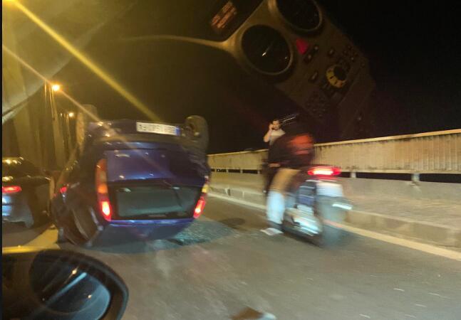 Kako javlja reporter Kurira, automobil je završio na krovu, a saobraćaj je obustavljen u jednoj traci ka Borči.