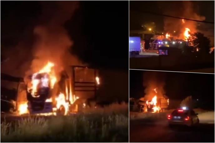 3 KAMIONA GORELA KOD PETROVE CRKVE: Eksplozija na parkingu auto-prevoznika (FOTO/VIDEO)