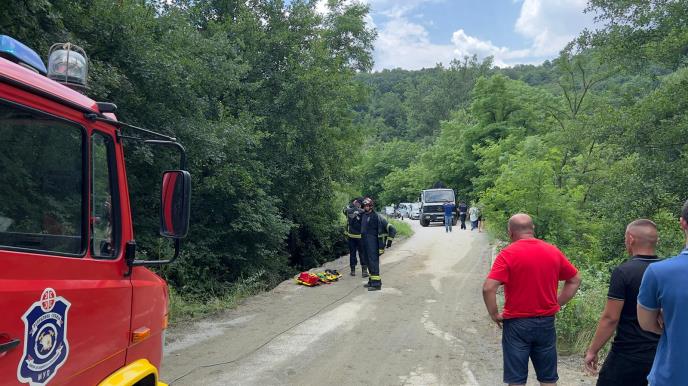 Četiri mladića starosti od 18 do 23 godine nastradala su na licu mesta, a vatrogasci pokušavaju da izvuku njihova tela iz provalije.