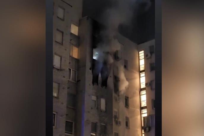 PRVI SNIMAK POŽARA U NOVOM BEOGRADU: Vatrogasci pronašli telo bake (100), vatra buknula u stanu na četvrtom spratu