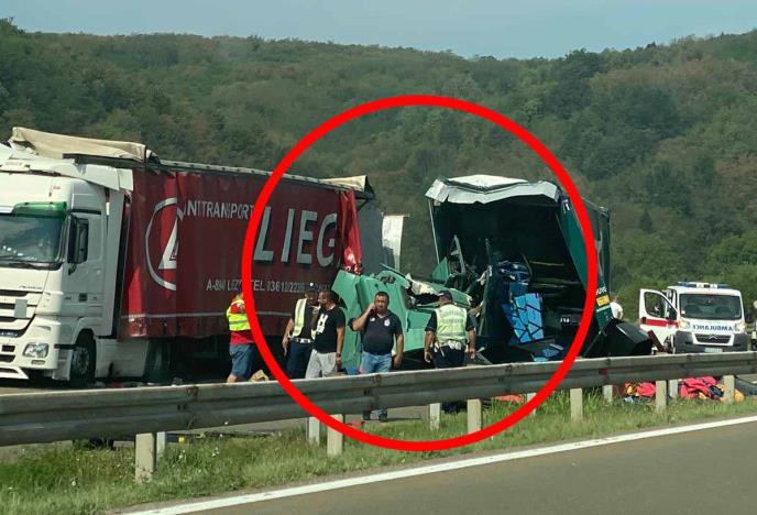 Na fotografijama sa mesta sudara vidi se da je kabina jednog teretnjaka potpuno smrskana.