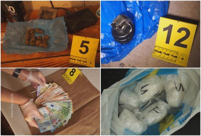 Policija je pretresom više stanova i automobila na teritoriji Zemuna koje su koristili osumnjičeni pronašla i manju količinu marihuane, tri vagice za precizno merenje, 4.000 evra i 35.000 dinara, kao i predmete za pakovanje narkotika, dok je kod N. T. pronađena i jedna ručna bomba, pa će protiv njega biti podneta i krivična prijava zbog postojanja osnova sumnje da je izvršio krivično delo nedozvoljena proizvodnja, držanje, nošenje i promet oružja i eksplozivnih materija.