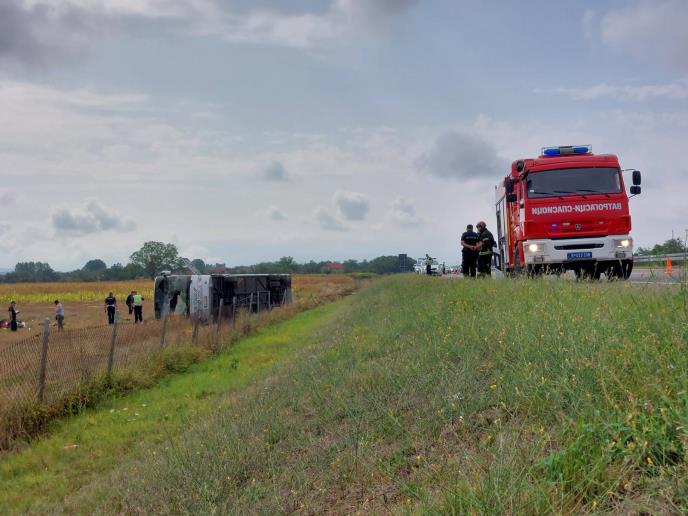 Nesreća se dogodila kod mesta Pečenjevci kad je autobus somborskih registarskih oznaka izleteo sa puta nakon čega se prevrnuo na bok.
