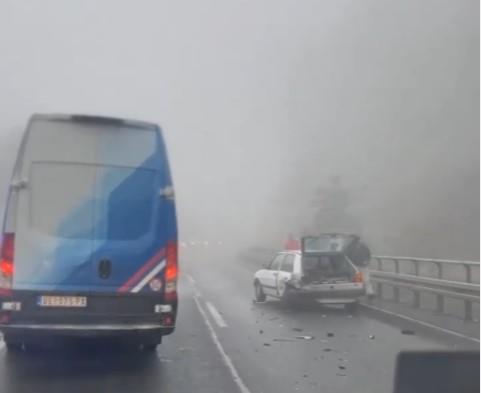 ČAJETINA - Smanjena vidljivost i gusta magla u ranim jutarnjim satima na putnom pravcu Užice - Zlatibor doveli su do saobraćajne nezgode kada su se na izlasku iz tunela sudarila dva putnička vozila.