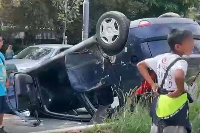 TEŠKA SAOBRAĆAJKA NA TROŠARINI, AUTO PREVRNUT NA KROV: Dvoje povređenih u udesu na kružnom toku