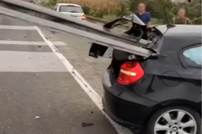 Do nesreće je došlo u smeru ka Beogradu, a bankina je bukvalno probila auto od zadnjeg stakla do haube, što se vidi i na snimku koji se pojavio na društvenoj mreži Instagram.
