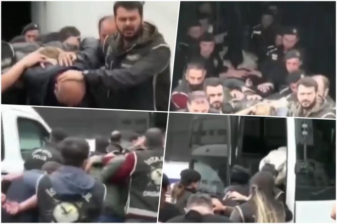 Turski pripadnici policije, prema snimku, iz objekta izvode osumnjičene, tako što pored svakog od uhapšenih sa obe strane stoje policajci, koji ih drže za ruke. Naime, osumnjičeni gledaju u pod, dok su im lisice na rukama odpozadi. Primetno je i to da je ispred objekta parkiran autobus turske policije i da svi uhapšeni ulaze uz pratnju u prevoz.