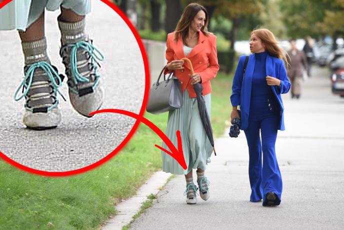 I danas je, kao i obično, na suđenje došla doterana u vedroj kombinaciji -narandžasti sako i duga plisirana svetlozelenkasta suknja, koja je bila u istom tonu sa neobičnim čizmicama na pertlanje.